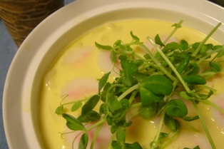 百合根、なると、うどん、豆苗。 どんぶり2杯分でうどん玉1つ、たまご3個、出汁600CCです。