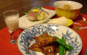 刺身はすずき。 酒はマッコリ。 甘酒と乳酸菌飲料を混ぜて砂糖を抜いたらこんな感じ。