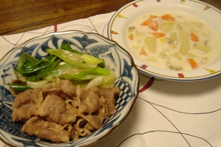 右手はクラムチャウダー。